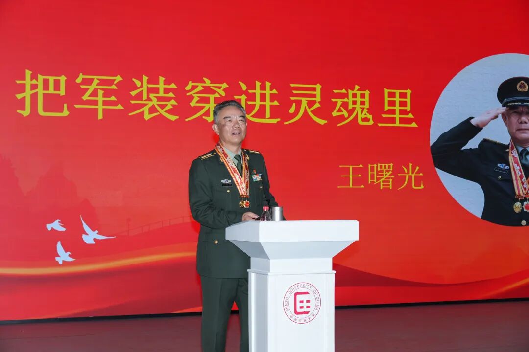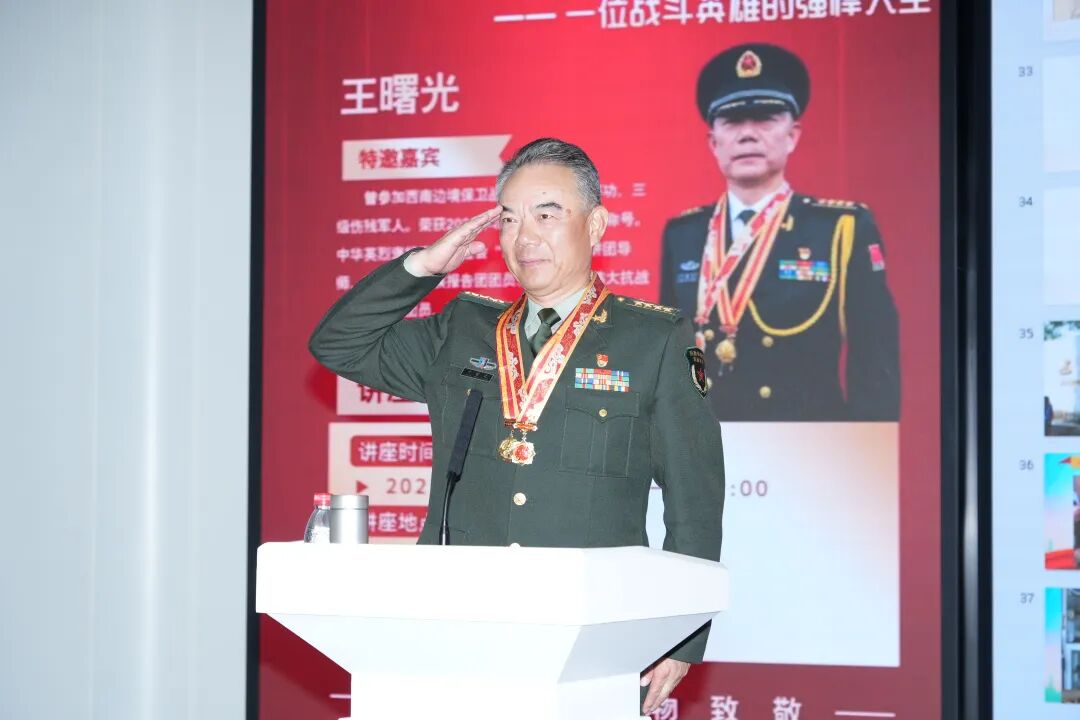 王大校的事迹告诉大家, 一个普通人的坚持,可以走得很远;一颗报国心的炽热,足以照亮时代。最后,王曙光大校勉励青年学子:“付吾辈之韶华,耀吾辈之中华”,将爱国之情、报国之志转化为脚踏实地、砥砺前行的力量。