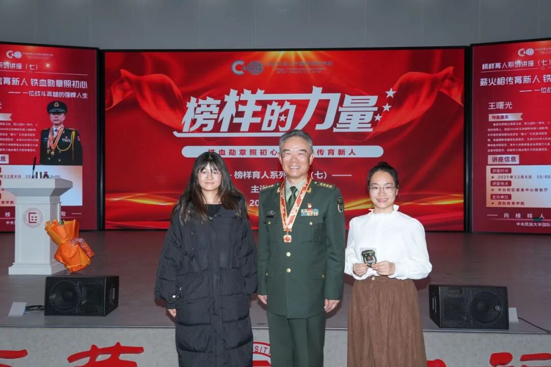 12月8日,国际教育学院“榜样育人”系列讲座第七讲在丰台校区信息中心报告厅举行。北京榜样人物、战斗英雄王曙光大校受邀为本科生讲授了一堂特殊的思政课。国际教育学院党委书记周铁海、副院长江傲霜、学院办公室主任刘国庆、团委书记李雅洁以及专职辅导员王续出席此次活动。