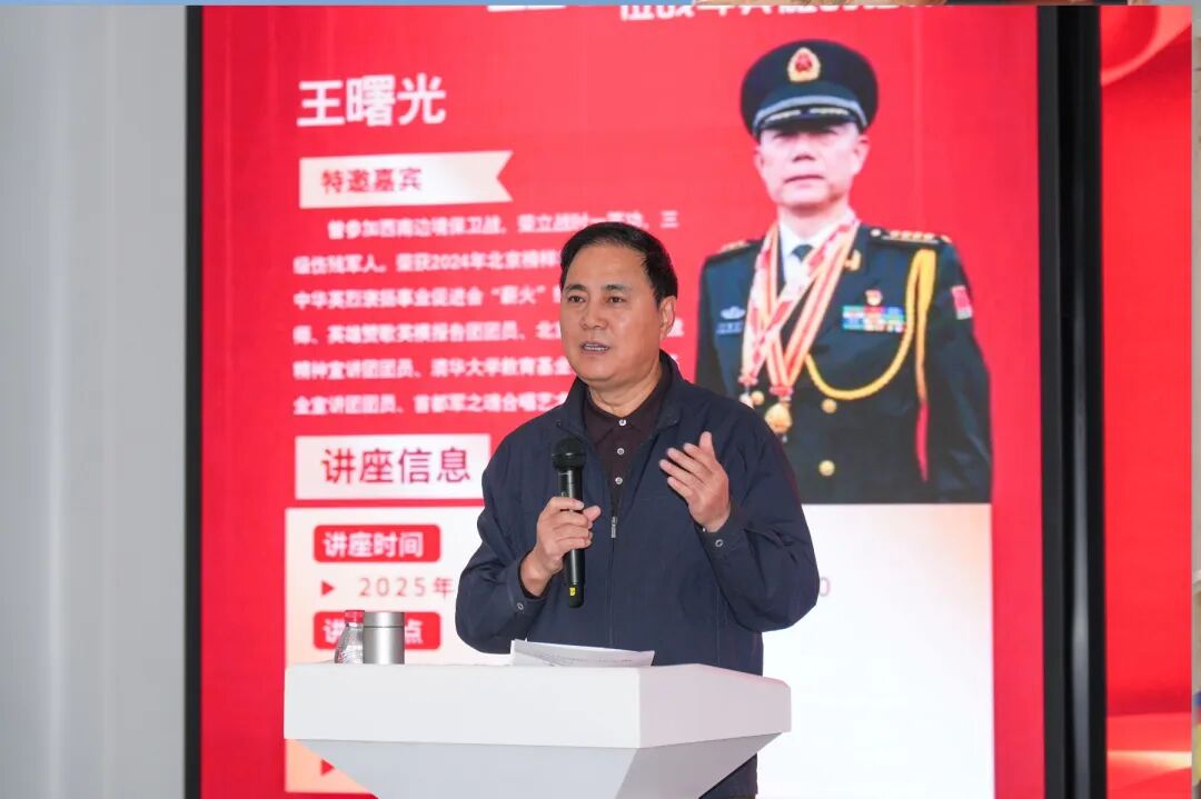 周铁海书记在开场致辞中介绍,王曙光大校曾身披戎装赴前线保家卫国,是一位“把军装穿进灵魂里”的真英雄。他希望同学们珍惜与英雄面对面交流的机会,从中汲取奋勇前行的精神动力,让青春在强国复兴中闪光!